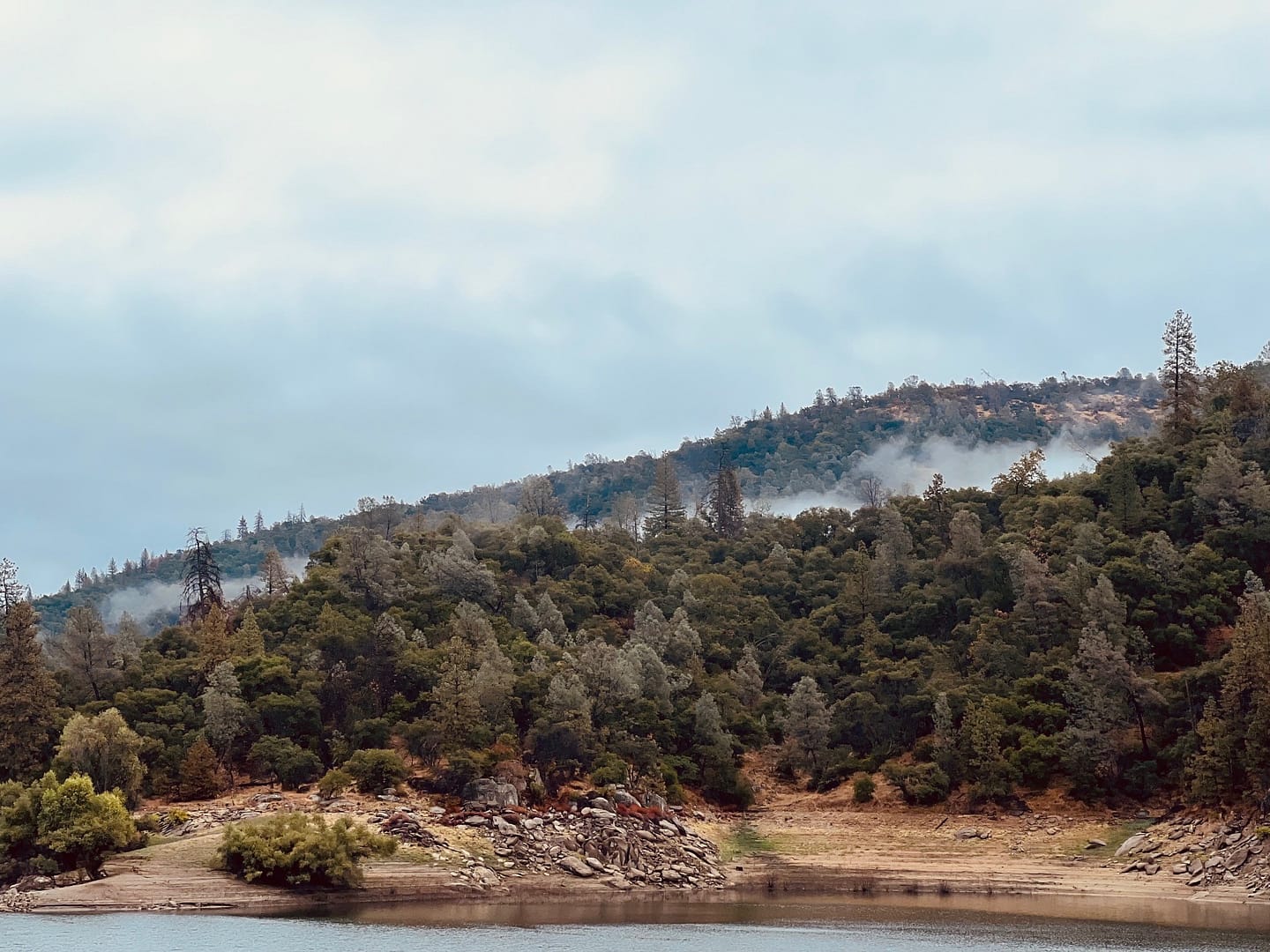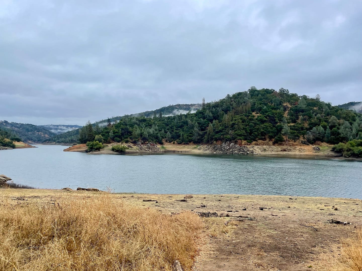 As you head toward the pond you can see lovely views of an area of Folsom Lake. There is a trail that leads to the lake as well and we decided to walk down that pathway too. It was absolutely beautiful with morning fog dancing around the little island peaks.