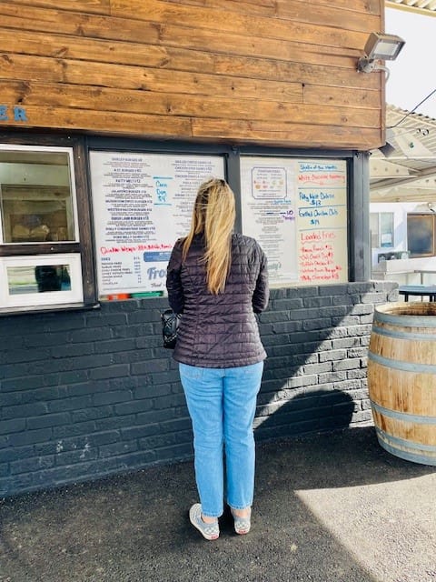 I do suggest bringing a blanket if you mind setting on dust and dirt. The building is an open-air facility with the elements of farm life on the couches and chairs, and the cutest chickens hop up on the tables and roam freely. You will see flies, gnats, and at times mosquitos, so bring that natural bug deterrent if you wish. But don’t let this stop you from checking Ruhstaller Farm out! It truly is a cool vibe and experience, and again, it is family-friendly so you will see kids and dogs enjoying the place as well ♥